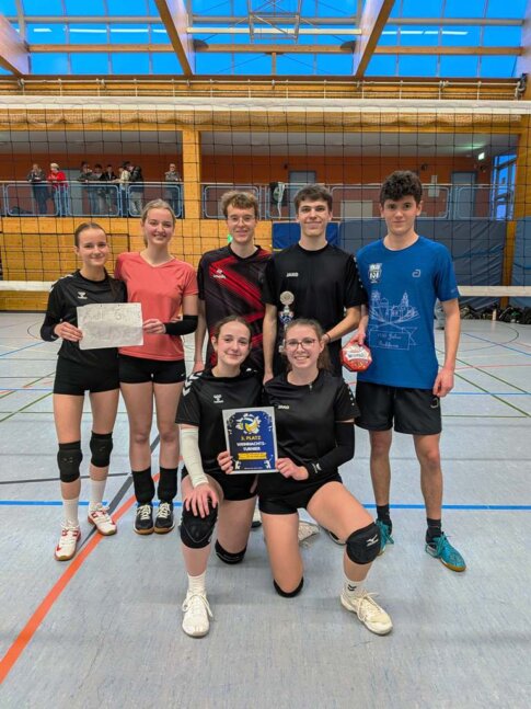 Am Donnerstag, den 18.12.2025 fand das Lehrer-Schüler-Volleyballturnier am Schillergymnasium Bleicherode statt. Acht gemeldete Mannschaften spielten in zwei Gruppen jeweils zehn Minuten jeder gegen jeden. Viel Einsatz, starke Spielzüge und Rettungsaktionen waren schon in dieser Gruppenphase beobachtbar. Anschließend setzte sich das Team der 11. Klassen "Black Eleven" im Spiel um Platz sieben gegen die Mannschaft der 9a durch. Im Spiel um Platz fünf trat das zweite Team der Jahrgangsstufe neun "Jonny" in Unterzahl gegen "Haramball" aus Klasse zehn an und gewann!